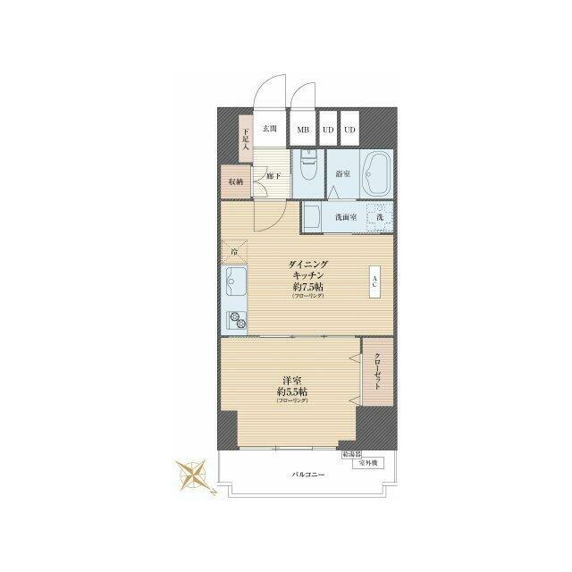 | 間取り(内訳) | 1DK(DK7.5、洋5.5) | ||