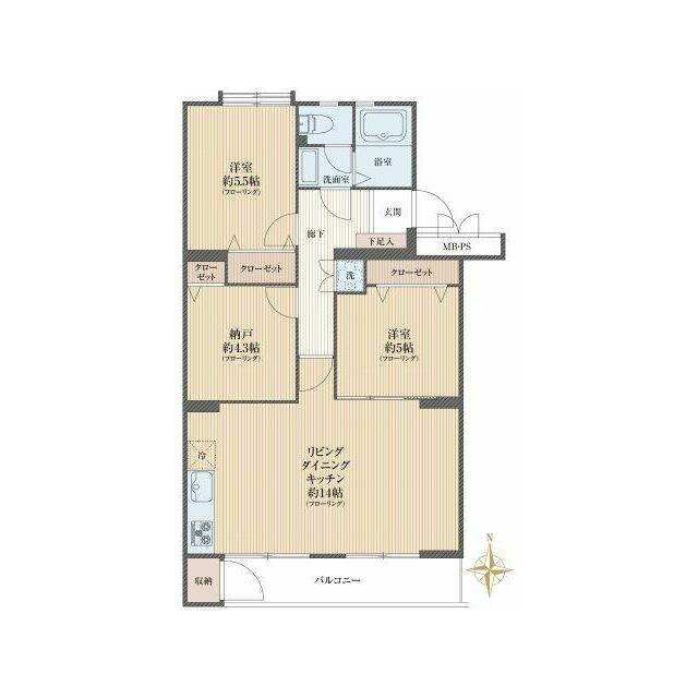 | 間取り(内訳) | 2SLDK(LDK14、洋5.5、5、S4.3) | ||
